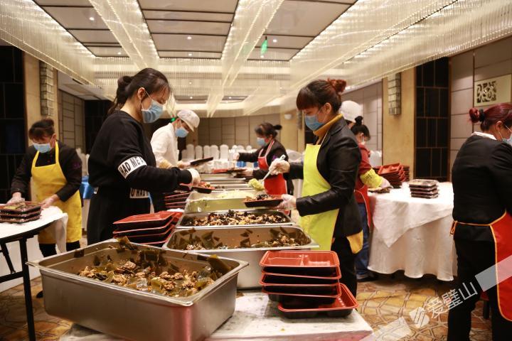 據悉,為配合防疫一線工作人員堅決打贏疫情防控阻擊戰,區機關事務局聯合綠島大飯店、錦宏居飯店,從2月7日起開始為璧泉街道、璧城街道及青杠街道等防控排查卡點工作人員提供午餐和晚餐保障,一直持續到各道口卡點撤銷為止。每天餐前,相關工作人員都精心準備菜肴,木耳肉絲、紅燒豬蹄、白灼菜心……每天的菜品都不相同,盡量做到營養均衡、品種豐富。