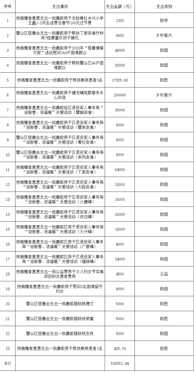 重慶市璧山區慈善會2022年度1季善款支出公示