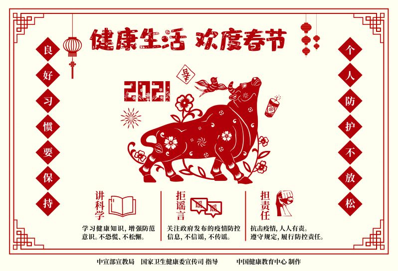 健康生活歡度春節(jié)剪紙海報(bào)5橫版