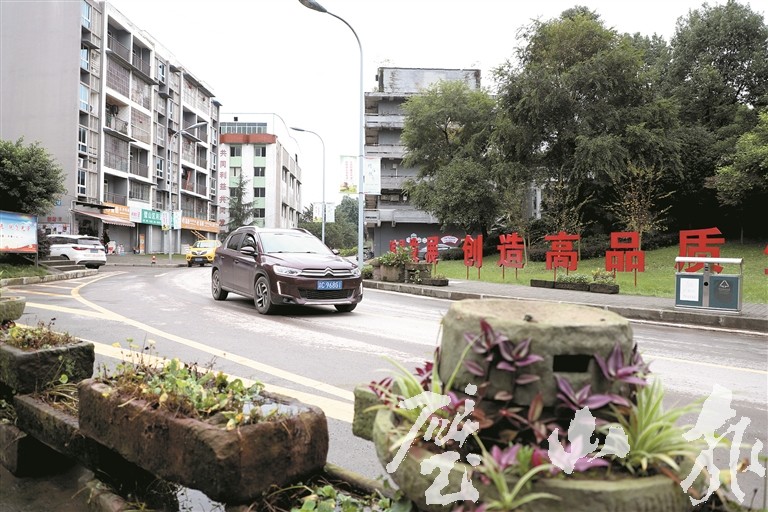 近日,一輛小車正行駛在兩邊栽有水生植物的河福路上。今年6月以來(lái),河邊鎮(zhèn)綜合行政執(zhí)法大隊(duì)在全鎮(zhèn)范圍內(nèi)收集了農(nóng)戶廢棄的水缸、豬槽、對(duì)窩、瓦罐等老物件300余件,并將其擺放在大街小巷,用于栽種銅錢草、睡蓮等水生植物,打造了50余處場(chǎng)鎮(zhèn)微景觀,既美化了城市環(huán)境,又助推了全國(guó)文明城區(qū)創(chuàng)建。(記者 王鋒 攝)