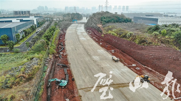9月3日,東林大道南延段工程車輛正在抓緊施工。據悉,東林大道南延段(以下簡稱南延段)道路工程起于東林大道(已建),終點與站前大道平交,雙向六車道,設計車速50km/h。南延段將成為璧山高鐵站片區快速交通網的重要部分,從城區到高鐵站又將多一條交通干道。目前,該道路路基土石方工程已基本完成,預計2021年3月底前完成竣工驗收正式通車。(記者 曾清龍 攝)