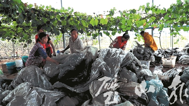 日前,記者來到正興鎮團結村正和葡萄種植專業合作社,只見蔬菜基地里一派忙碌景象。該社負責人朱三貴正和村民們一同將廢棄的農用地膜撿拾起來,打包裝筐運到基地門口,以便鎮上農膜回收網點的工作人員裝車運走。