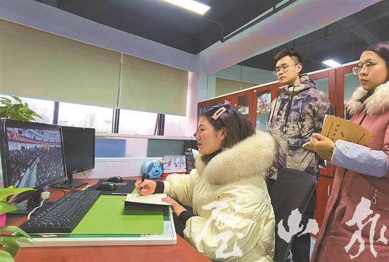 1月21日,璧泉街道華龍社區,工作人員正圍坐在一起觀看全市“兩會”相關報道。連日來,全市“兩會”召開的相關消息成為我區干部群眾關注的焦點,大家紛紛通過電腦、手機、報紙等媒體,及時了解市“兩會”內容,關注市“兩會”動態。