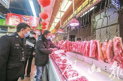 2月3日,區農業執法部門和市場監管部門聯合開展節前專項檢查,執法人員來到轄區超市、農貿市場等地檢查農產品質量,保障春節前后市場供給和市民舌尖上的安全。