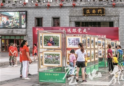 6月29日,市民在秀湖公園正南門廣場參觀“我們的中國夢 文化進萬家”系列主題作品展。