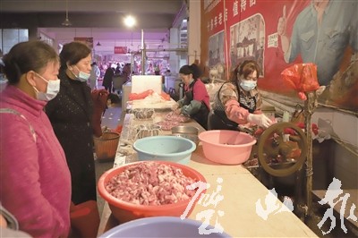 11月18日上午,記者走訪區內部分農貿市場看到,每一個香腸加工攤位前的顧客都不少。絞肉、套腸衣、灌香腸,店鋪里的師傅分工合作,動作也相當嫻熟。一市民告訴記者,每年這個時候都會灌制三四十斤香腸,春節期間擺一盤香氣騰騰的香腸上桌,這樣才有過年的氣氛。