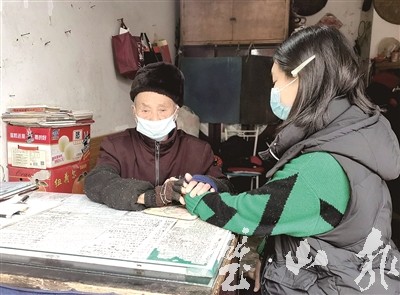 2月16日,在三合鎮平安二路一家不起眼的門市里,一位年輕人在紙上寫寫畫畫后遞給了旁邊的老人,老人手拿放大鏡仔細地看著,隨后將手搭在年輕人的脈搏上,經過望聞問切后,在紙上寫下處方。