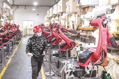 2月23日,在璧山高新區重慶炳榮精密制造有限公司的生產線上,自動機械手快速上下料。今年以來,該公司所有生產線“火力全開”,滿負荷運轉,折射出我區現代工業發展的強勁勢頭。春節過后,我區工業企業紛紛開足馬力搶時間,鉚足干勁趕訂單,全力沖刺“開門紅”,為全區經濟實現高質量發展注入更多動力。