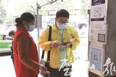 在重慶長運璧山汽車總站,進站口和出站口均設置了體溫檢測臺,旅客到站離站都需要進行智能體溫檢測和健康碼核驗。未成年人、老年人等特殊人群沒有健康碼的,均安排了工作人員進行指引登記。進入站內,旅客要全程佩戴口罩,并按要求保持距離。