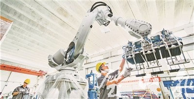 在重慶熱谷機器人科技有限責任公司,工人在組裝機械手臂。(資料圖片)
