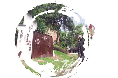 景觀小品中植入的書法元素吸引群眾駐足觀看