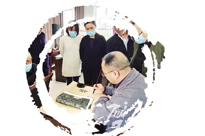 書法教師為居民展示書法