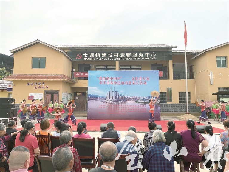 璧山報訊(記者 王淼 文/圖)5月6日,“我們的中國夢 文化進萬家”重慶市2022年送演出進基層活動走進七塘鎮建設村,來自重慶歌舞團的專業演員為當地100余名群眾送去了一臺精彩紛呈的演出。