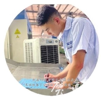凱成科技有限公司濕壓成型車間配備了空調扇為員工降溫