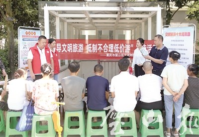 8月9日,區文化旅游委在文體廣場開展“倡導文明旅游 抵制不合理低價游”宣傳活動。