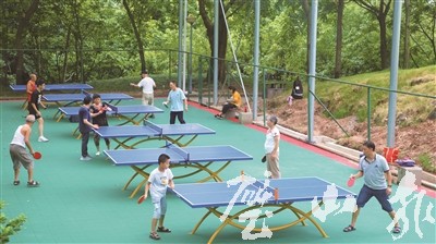 ▲ 9月5日,市民在電視塔公園打乒乓球,鍛煉身體。