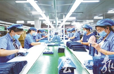 9月5日,凱成科技公司員工在生產(chǎn)線上忙綠。