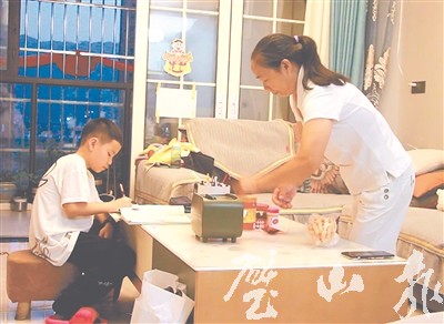 黃繼瓊一邊整理房間一邊叮囑孫子好好學習